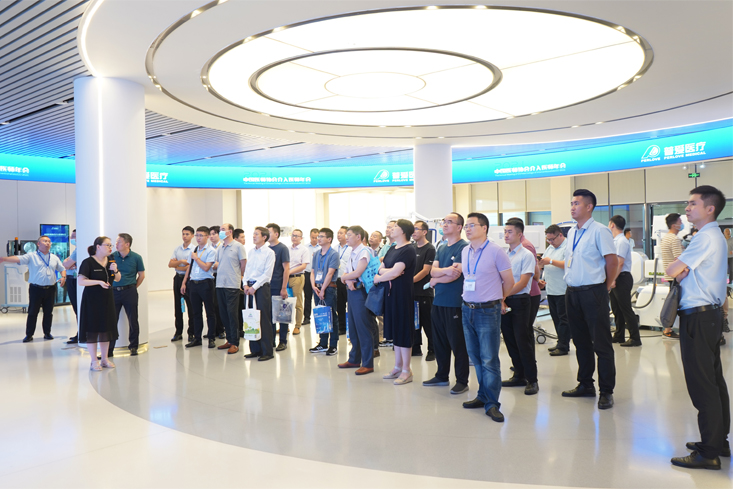 專家們參觀了我司多功能展廳、研發(fā)中心、生產(chǎn)基地以及介入導(dǎo)管室,近距離的了解我司新科技成果及生產(chǎn)規(guī)模,對(duì)我司近年來在介入醫(yī)學(xué)人才培養(yǎng)和臨床應(yīng)用推廣方面做出的貢獻(xiàn)給予了高度評(píng)價(jià)。