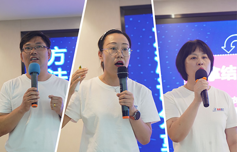 參會人員共分為八組,每組成員均來自普愛醫(yī)療的不同部門,會議緊緊圍繞“定目標(biāo)、追過程、拿結(jié)果”展開,每組結(jié)合工作中的實際案例進行分享,共同探討管理技能提升?,F(xiàn)場互動提問環(huán)節(jié),緊張激烈,提出質(zhì)疑,給予建議,大家在準(zhǔn)備和分享的過程中呈現(xiàn)了一場深度跨界融合的思想盛宴。