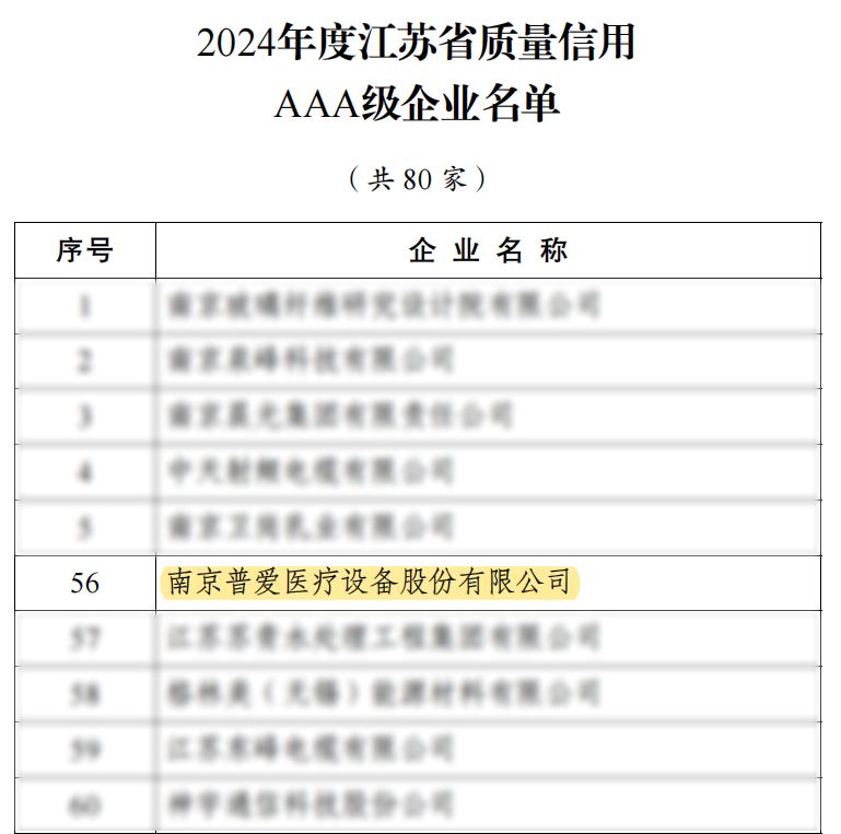 11月25日,江蘇省市場(chǎng)監(jiān)管局發(fā)布了《2024年度江蘇省質(zhì)量信用AAA級(jí)企業(yè)公示名單》,普愛醫(yī)療以優(yōu)秀的產(chǎn)品質(zhì)量、穩(wěn)定的運(yùn)營(yíng)能力及良好的社會(huì)責(zé)任實(shí)踐成功入選。