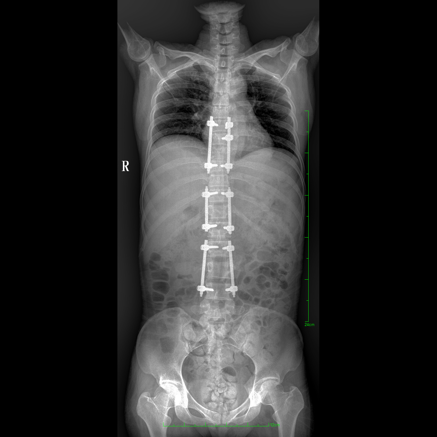 17"*34"有效視野,一次成像不拼接。相較于多張攝影再軟件拼接的DR設備,PLX8600解決了拼接圖像存在密度不均勻,拼接處圖像配準和放大效應等問題,給臨床帶來了大視野影像解決方案,可一次性覆蓋全脊柱或雙下肢影像。
